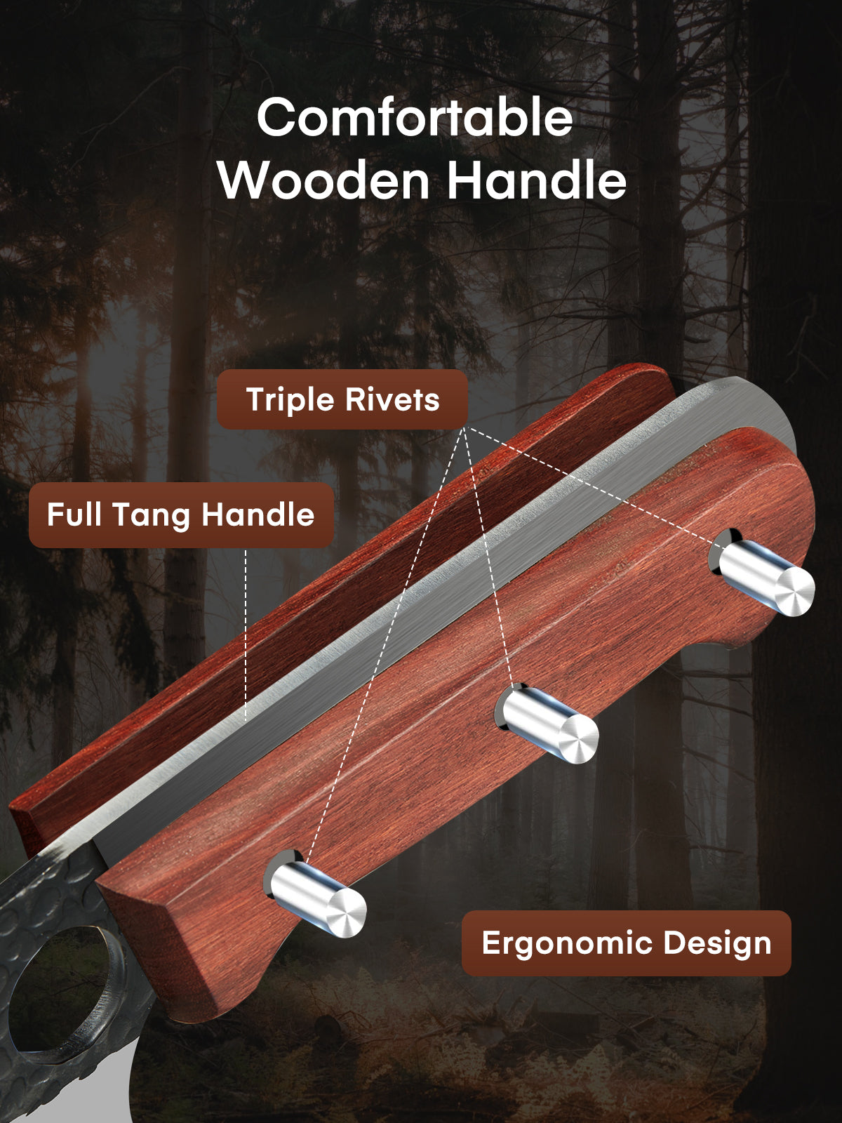 - Perfect Grip and Balance: Featuring a triple-riveted full-tang construction with premium hardwoods, our handles combine durability with refined aesthetics, providing a comfortable and secure grip.The wood handle is durable, comfortable,non-slip, and easy to clean