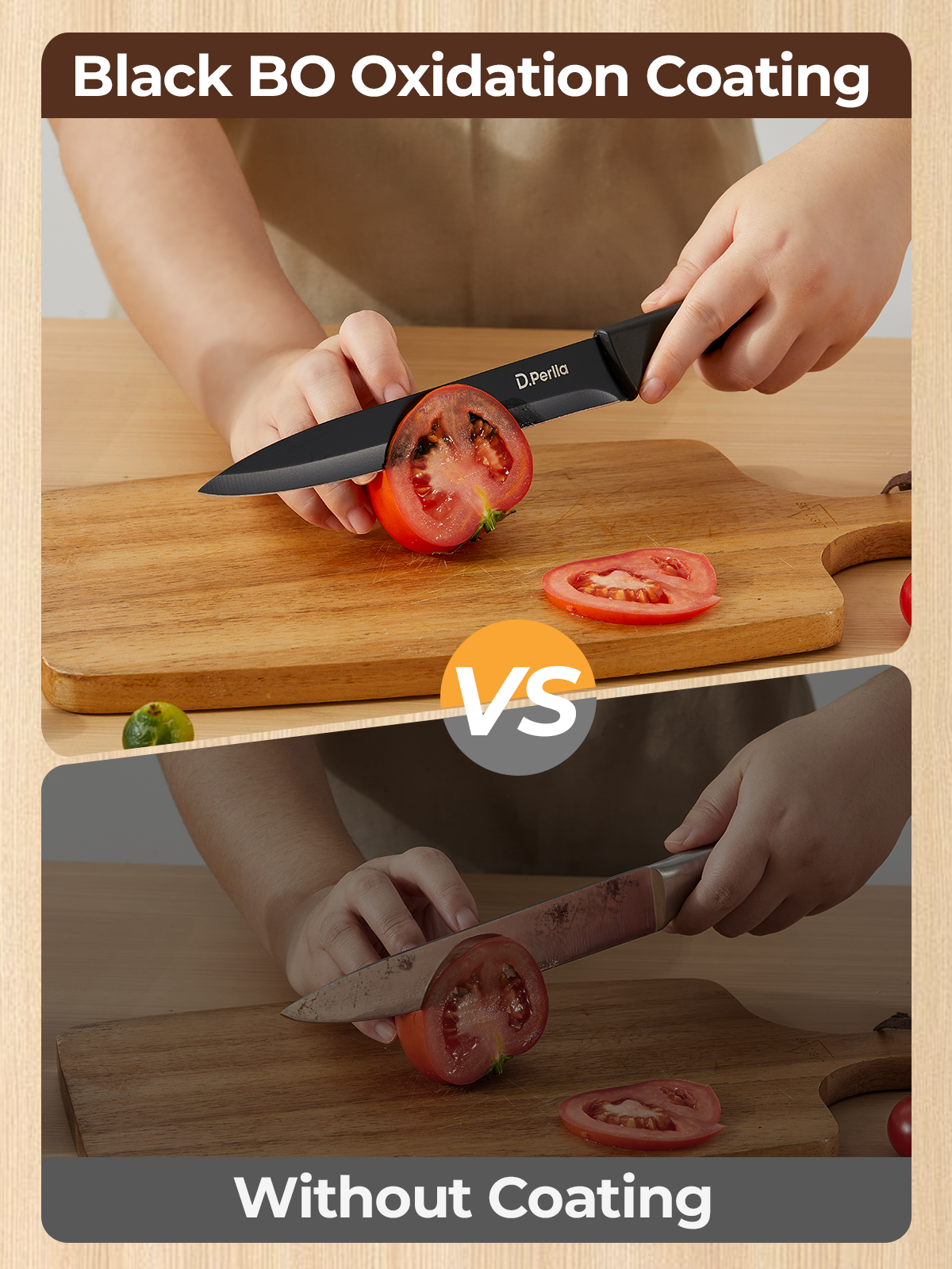 - Non-stick & No Rust Coating: Each knife features a BO Oxidation black coating on German 1.4116 stainless steel blades that prevents food from sticking and allows for easy cleaning and maintenance after use. And provides lasting rust resistance, anti-stick properties, and wash-resistant performance, making it ideal for long-term use of cutting tools