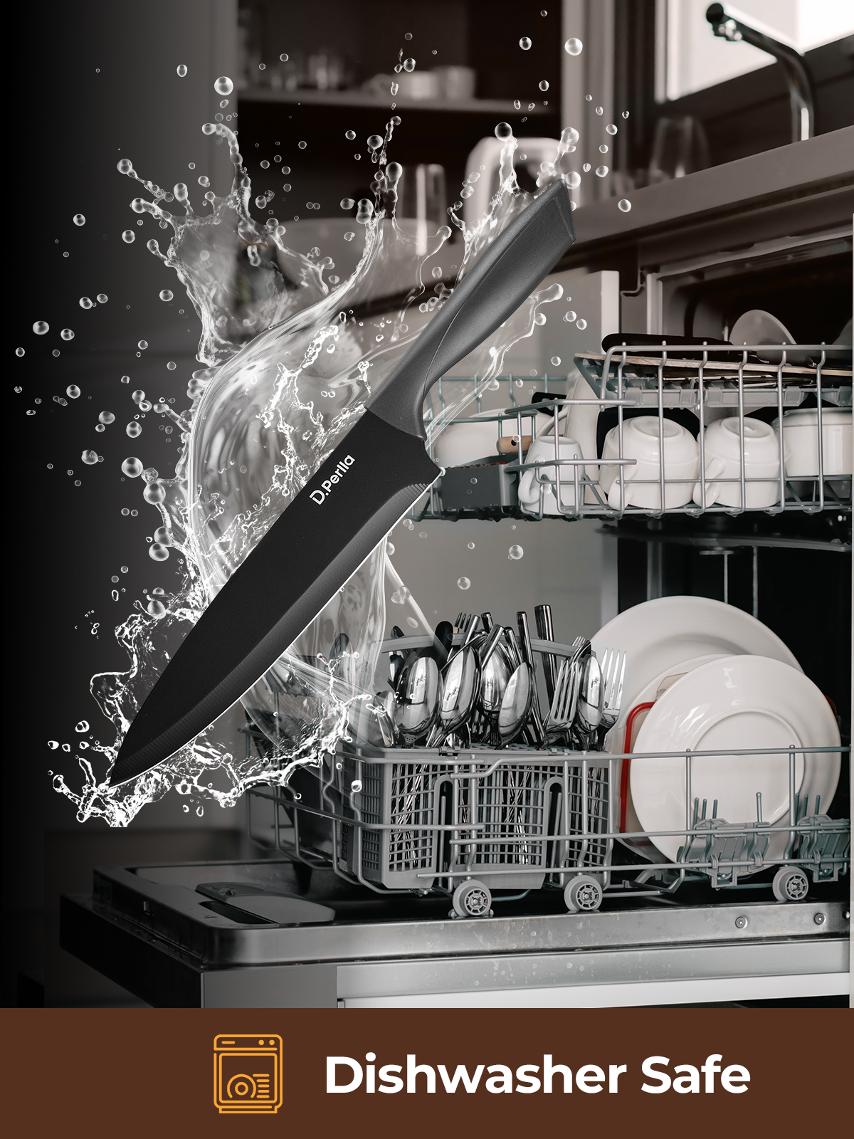 Knife Set, D.Perlla 8-Piece Knives Set with Built-in Sharpener, Dishwasher Safe, Non-stick & Non Rust, Black Coating Stainless Steel Knife Block Set, Sharp Chef Knives with Universal Knife Block